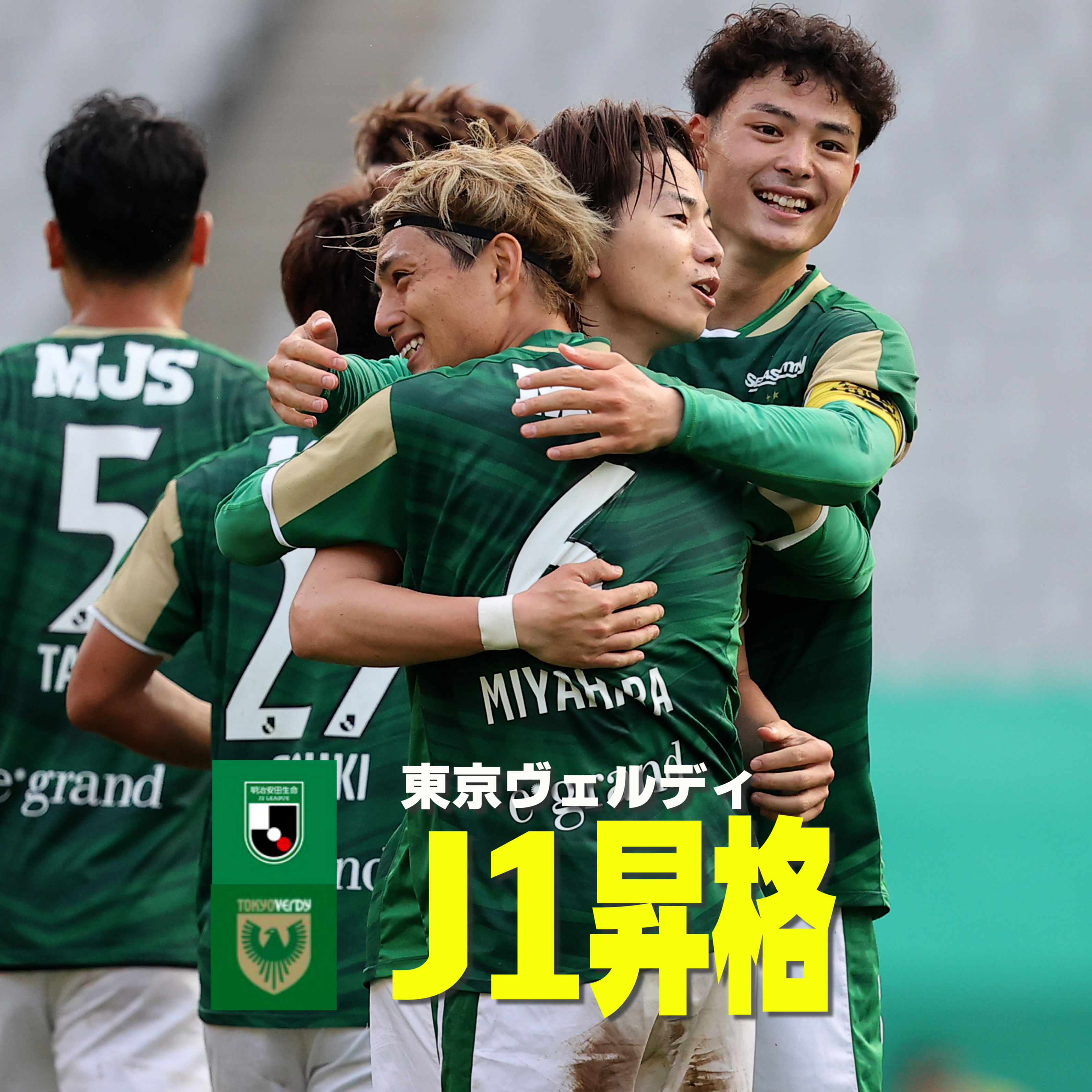 追い詰められた東京Vは後半アディショナルタイムに劇的弾。土壇場で起死回生の同点ゴールを決め、1―1の引き分け。清水より年間順位上位のため、16年ぶりののJ1復帰が決まった。