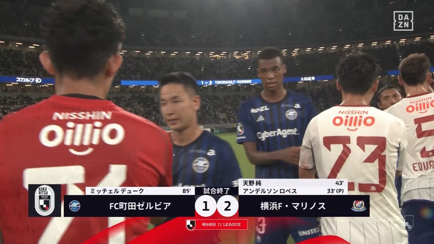 町田は終盤に猛攻を仕掛けたものの、最後まで2点目が奪うことはできず。横浜FMが気迫に満ちた守りで逃げ切りに成功し、町田は7試合ぶり黒星、横浜FMは2連勝となった。