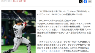 最新ニュース 【悲報】「難解すぎ」プロ野球のホームラン場面で使われたサッカーのスラング「ケチャップドバドバ」にファン困惑wwww 1: 名無し@サカサカ10 2025/09/23(火) 11:49:45.95 プロ野球の試合で飛び出した「ケチャップドバドバ」というワードが、SNSでファンの反響を呼んでいる。 DAZNベースボールの公式X(旧ツイッター/@DAZNJ... 2025.09.23 最新ニュース